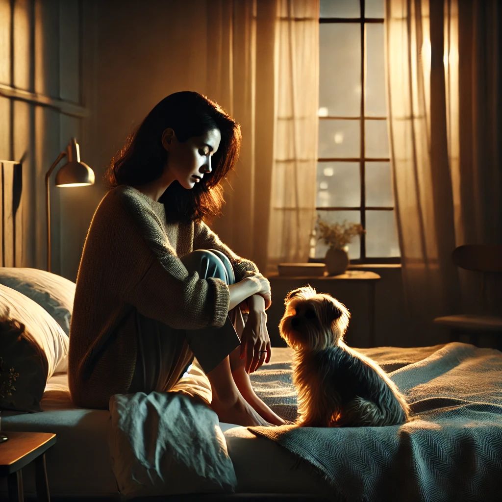 Sie zog Nelly sanft auf ihren Schoß und lehnte sich zurück. Die Dunkelheit des Zimmers fühlte sich weniger erdrückend an, während das kleine Herz der Hündin gleichmäßig schlug. Der Raum war still, doch diesmal war es keine bedrohliche Stille. Es war einfach Ruhe. Für einen Moment war das genug.