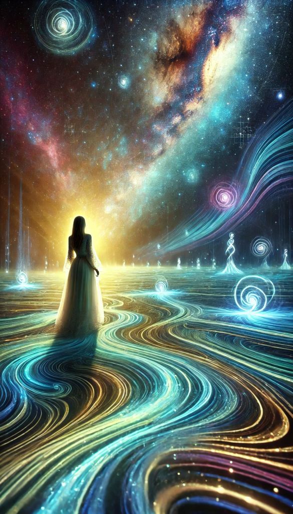 Dann begann die Musik. Es war, als hätte das Universum zu singen begonnen. Ein Klang, so vollkommen, dass er keine Melodie brauchte. Es war der Herzschlag von allem, was war und jemals sein würde – sanft und gewaltig zugleich. Die Musik wuchs, wie Wellen, die auf sie zurollten, und jede einzelne Schwingung vibrierte in ihrem Inneren, verband sich mit ihr, bis sie selbst zu klingen begann. Elena wurde zum Resonanzkörper, ein Teil der Musik, und doch nur ein winziger Punkt darin.