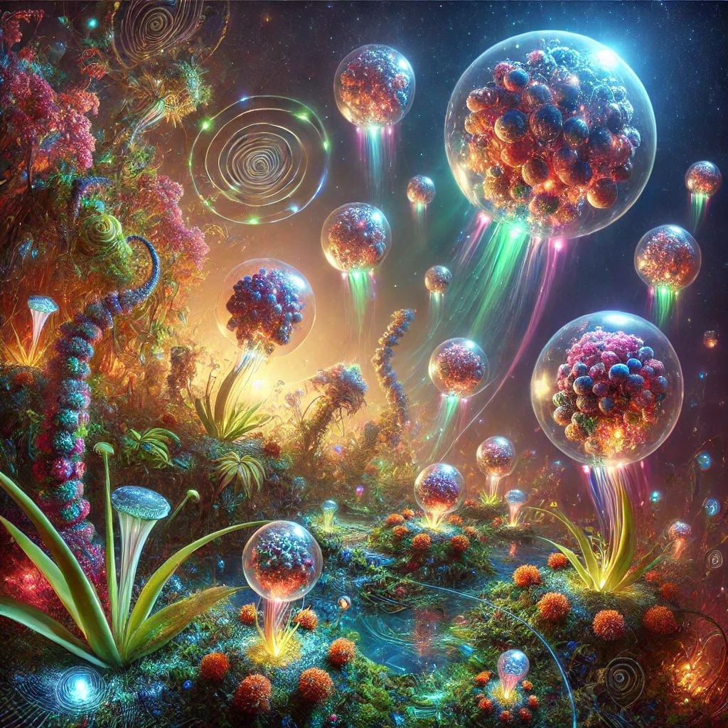 Die ersten Begegnungen waren zögerlich. Die Sonden schwebten über den Pflanzen, ahmten ihre Lichtmuster nach und warteten auf eine Reaktion. Die Pflanzen reagierten tatsächlich, öffneten ihre spiralförmigen Blätter und leuchteten in synchronen Farben. Es war ein Dialog aus Licht, der Vertrauen schuf. Bald traten die hybriden Kreaturen hinzu, näherten sich den Sonden mit langsamen Bewegungen und stimmten harmonische Töne an, die wie primitive Gesänge klangen. Die Sonden antworteten, indem sie ihre Formationen anpassten und ihre Farben veränderten.